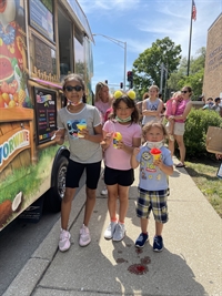 Description: The Kona Ice Truck stopped by the library on a 90-degree day and gave away free cups of shaved ice as part of the library's summer reading program.