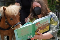Description: The photo was taken during the library's miniature horse therapy program for stressed-out teens and adults.