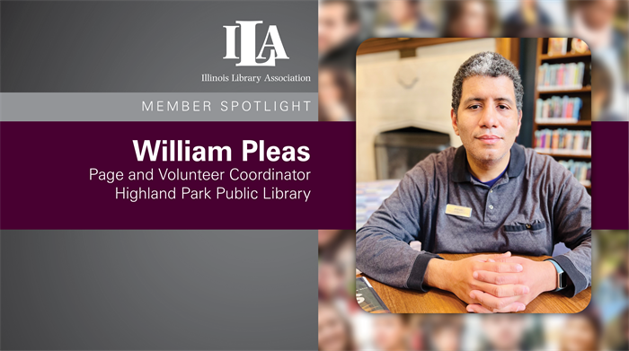 This week's member spotlight is on William Pleas. William is the page and volunteer coordinator at the Highland Park Public Library. He is a member of the Reaching Forward Forum and served on the ILA Conference Program Committee in 2020 and 2021.
