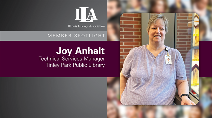 This week's member spotlight is on Joy Anhalt. Joy has served on the 2018 and 2019 ILA Conference Program Committees and is the current manager of the ILA Resources and Technical Services Forum (RTSF). We asked Joy to tell us a little about herself and answer a few professional and amusing questions. Continue reading to find out more about Joy.