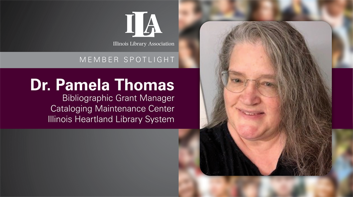 This week's member spotlight is on Dr. Pamela Thomas. Pamela serves on the ILA Awards Committee, and works at Illinois Heartland Library System (IHLS) as the Bibliographic Grant Manager for the Cataloging Maintenance Center (CMC). We asked Pamela to tell us a little about herself and answer a few professional and amusing questions. Continue reading to find out more about Pamela.
