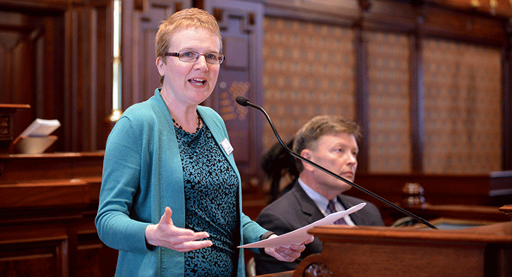 ILA President Jeannie Dilger presented testimony on June 9 to the full Illinois Senate opposing property tax proposals that would limit local library funding.