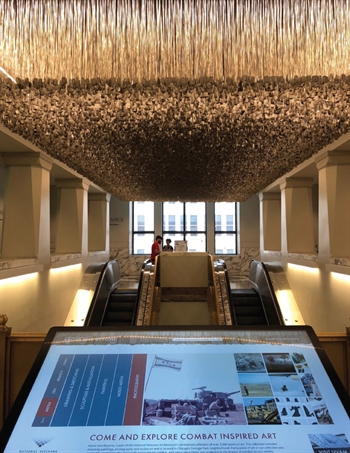 Exhibits can be found in urban and rural public libraries in Illinois. Some are aesthetically driven while others encourage participation. Libraries collaborate with local and national organizations in delivering exhibits that commemorate and celebrate specific causes. For example, Harold Washington Library Center of the Chicago Public Library in downtown Chicago has the Above and Beyond art installation in collaboration with the National Veterans Art Museum. This is a four-year exhibit running from 2016 to 2020 that features over 58,000 hand-stamped replicated dog tags representing U.S. soldiers who lost their lives in the Vietnam War. The exhibit includes an interactive kiosk where visitors can look up veterans’ names and find the location of their hanging dog tags.