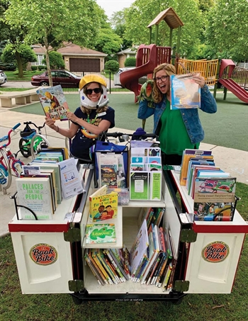 Bookmobiles, and their variations such as passenger vans and book bikes, are an important and perhaps the truest form of library outreach, as their role is to bring the library to the people. From the outreach vehicles, staff can create library cards, circulate materials, do small crafts, distribute library and partner publications, give away free books and library swag, and many other engaging activities. Oak Park Public Library's Book Bike operates from April to October, going to school-sponsored events, community events, as well as local block parties. Effingham Public Library also owns a Book Bike, fueled by the same community engagement that brought their Book Box ending machine. Through donated books, cycling staff can pedal out into the community and deliver books to the areas that need them the most. Bloomington Public Library’s Bookmobile operates on a three-week schedule, visiting 48 locations. Highland Park Public Library’s READMobile, loaded with tents, tables, chairs, books, and other materials, goes to events and gets especially polished for the Fourth of July Parade, where staff hands out candy. Normal Public Library owns two outreach vehicles for attending events, delivering deposit collections, and home delivery service. Fountaindale’s Bookmobile is a full-service mobile branch of the library that provides programming and all types of materials for patrons of all ages. Fountaindale is getting ready to welcome a new Bookmobile equipped with a TV and display monitor that will allow patrons to enjoy programming and other media outside the vehicle.